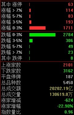 截至收盘,沪指跌0.25%,报3997.56点人人生,深成指跌0.36%,报13404.06点,创业板指跌0.51%,报3208.21点,科创50指数跌1.47%,报1415.69点。沪深两市合计成交额19990.53亿元。
